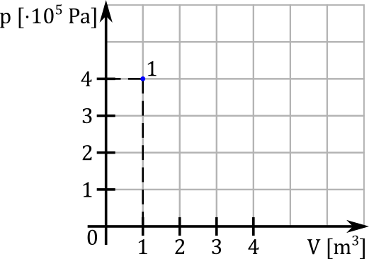 W tym zadaniu narysuj wykres zależności p(V) w trakcie przemiany izotermicznej, w wyniku której gaz, którego stan początkowy pokazano na rysunku, zwiększył swoją objętość ośmiokrotnie.