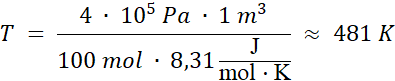 Korzystamy z równania Clapeyrona i wyznaczamy temperaturę.