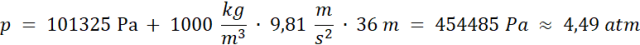 W tym zadaniu oblicz ciśnienie w płucach nurka na głębokości h = 36 m, jeśli jest ono równe ciśnieniu zewnętrznemu. Przyjmij gęstość wody