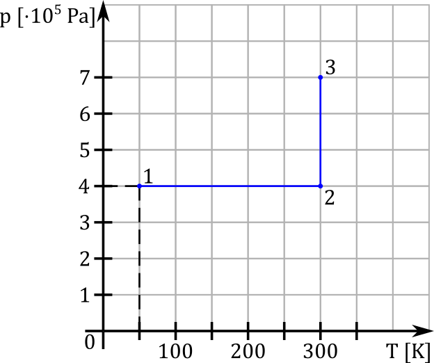 W tym zadaniu oblicz objętość gazu w stanie (2) i (3), jeśli objętość gazu w stanie (1) jest równa V1 = 14 dm3.