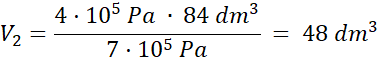 Odpowiedź: W stanie (2) gaz ma objętość 84 dm3, a w stanie (3) objętość 48 dm3.