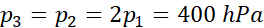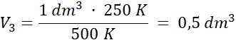 Odpowiedź: Objętość gazu po pierwszej przemianie to 1 dm3, po drugiej objętość wynosi 0,5 dm3, a końcowe ciśnienie to 200 hPa.