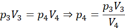 W tym zadaniu oblicz objętość gazu po pierwszej i drugiej przemianie oraz jego ciśnienie końcowe p4, jeśli początkowo gaz miał temperaturę T1 = 227oC, ciśnienie p1 = 200 hPa i objętość V1 = 2 dm3. Najpierw gaz został sprężony izotermicznie tak, że jego ciśnienie wzrosło dwukrotnie, następnie oziębiony izobarycznie do temperatury T3 = -23oC, a potem rozprężony izotermicznie do objętości końcowej V4 = 1 dm3.