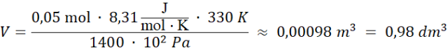 Odpowiedź: Gaz ma objętość około 0,98 dm3.