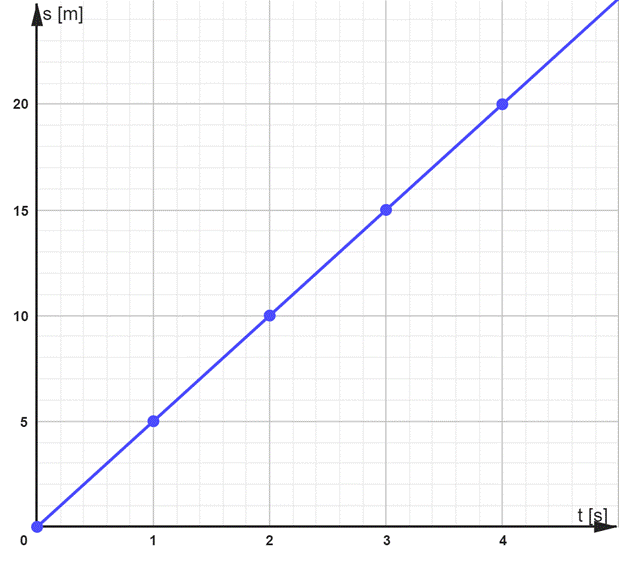 Sporządź wykres zależności drogi od czasu w ruchu jednostajnym.