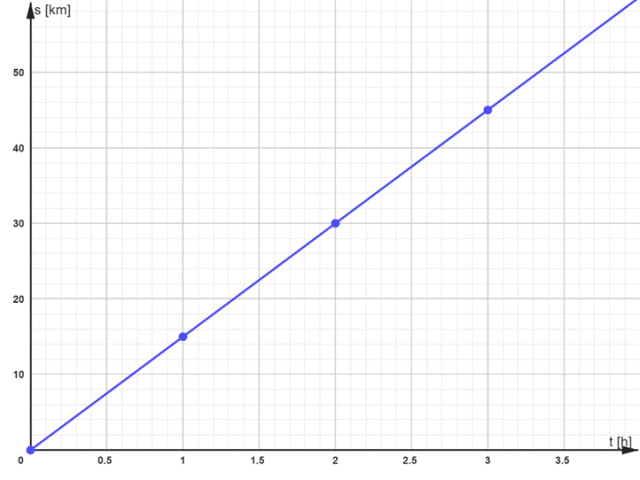 wynika, że w ciągu każdej godziny ruchu ciało przebywa 15 km.