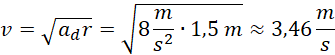 Oblicz szybkość kątową i szybkość liniową Asi poruszającej się na karuzeli o promieniu 1,5 m ze stałą prędkością, jeśli jej przyspieszenie dośrodkowe ma wartość 8 m/s2.