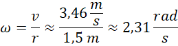 Korzystamy ze wzoru na przyspieszenie dośrodkowe, który przekształcamy. Wstawiamy dane liczbowe i obliczamy wartość prędkości liniowej. Prędkość kątową obliczamy, korzystając z jej zależności od prędkości liniowej.