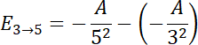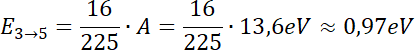 Energię pochłoniętą przez atom przy przeskoku z trzeciej na piątą orbitę możemy zapisać:
