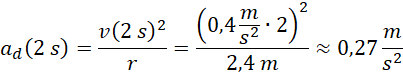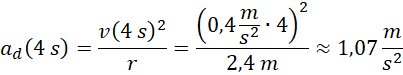Korzystamy ze wzoru na przyspieszenie dośrodkowe, do którego wstawiamy odpowiednie wartości liczbowe, zgodnie z zadanym czasem w treści zadania.