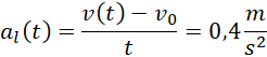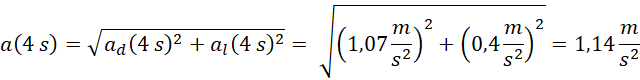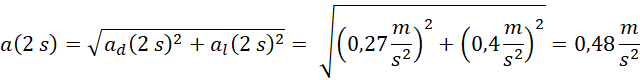 Przyspieszenie całkowite obliczamy, korzystając z twierdzenia Pitagorasa, gdzie przyprostokątnymi są wektory przyspieszenia liniowego i dośrodkowego. Przyspieszenie liniowe obliczamy jako stosunek przyrostu prędkości do przyrostu czasu.