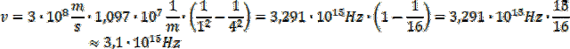 do wzoru Balmera. Dzięki temu możliwe jest wyznaczenie wzoru na szukaną częstotliwość promieniowania. Po przekształceniu wzoru otrzymujemy gotowe równanie: