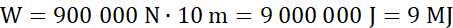 Wykonano pracę równą 9 megadżulom.