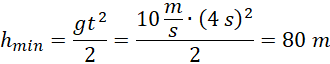 Wiedząc, że kamień rzucony poziomo z prędkością początkową o wartości 10 m/s spadał ponad cztery sekundy oblicz minimalną wysokość wieży, z której został rzucony.