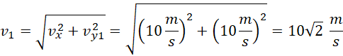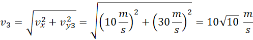 Obliczamy prędkości po danym czasie na osi y i całkowite prędkości. Następnie zestawiamy je ze sobą.