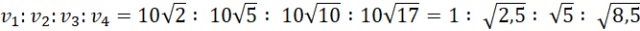 Wiedząc, że kamień rzucony poziomo z prędkością początkową o wartości 10 m/s spadał ponad cztery sekundy oblicz stosunek, w jakim pozostają względem siebie szybkości kamienia po 1 s, 2 s, 3 s i 4 s ruchu.