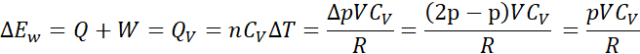 Korzystając z równania Clapeyrona wyznaczamy zależność między zmianą temperatury i liczbą moli a zmianą ciśnienia i objętością gazu. Korzystając z pierwszej zasady termodynamiki, wyznaczamy zmianę energii wewnętrznej.