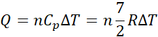 Korzystamy ze wzoru na ciepło molowe gazu dwuatomowego przy stałym ciśnieniu.