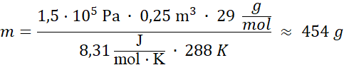 W tym zadaniu oblicz masę powietrza (które traktujemy jako dwuatomowy gaz doskonały), znajdującego się w zbiorniku pod stałym ciśnieniem