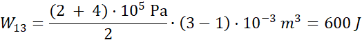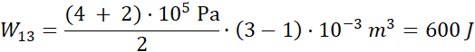 Odpowiedź: Praca wykonana w przemianach 1 – 3 oraz 3 – 2 wynosi 600 J.