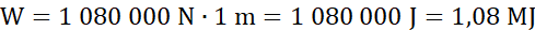 Wykonano pracę równą 1,08 megadżula.