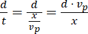 Kula leciała ze stałą prędkością (vk) prostopadle to kierunku ruchu pociągu, więc droga, jaką pokonała, jest równa szerokości pociągu (d). Czas jej przelotu (t) wyznaczony jest przez przesunięcie miejsca wylotu (r), gdy pociąg jechał ze stałą prędkością (vp) – cały pociąg przesunął się względem lecącej kuli. W obu przypadkach ciała poruszały się ze stałymi prędkościami.
