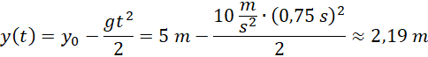 Zapisujemy równanie ruchu na osi x. Na jego podstawie obliczamy czas, jaki zajęło ciału dotarcie do punktu x = 3 m. Następnie zapisujemy równanie ruchu na osi y i obliczamy wysokość, podstawiając dane liczbowe.