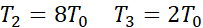 Temperatury w stanach 2 i 3 obliczamy, zapisując równania Clapeyrona dla poszczególnych stanów i wstawiając wartość