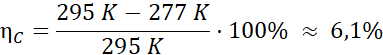Korzystamy ze wzoru na sprawność silnika Carnota działającego między podanymi temperaturami skrajnymi.