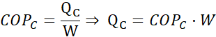 Korzystając ze wzoru na współczynnik efektywności, obliczamy ciepło pobrane z komory chłodniczej.