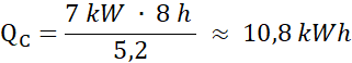 W tym zadaniu oblicz ilość zużytej energii oraz ilość energii oddanej na zewnątrz przez klimatyzator o mocy chłodniczej Pc = 7 kW i współczynniku efektywności COPC = 5,2 przez 8 h ciągłej pracy.