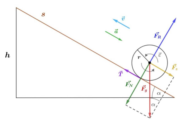 Ze względu na to, że tarcie powoduje ruch kuli w „górę”, a siła zsuwająca w „dół”, to wypadkowa jest różnicą wartości tych sił.