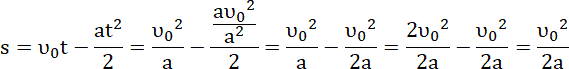 Następnie skorzystaj z zależności opisujących drogę w ruchu jednostajnie opóźnionym