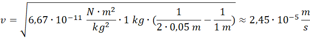 Korzystając z wzoru wyprowadzonego w podpunkcie 9.2., oblicz wartość liczbową szybkości kulek wiedząc, że i .