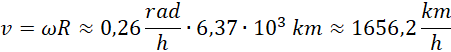 Oblicz w przybliżeniu szybkość liniową mieszkańców równika, przyjmując, że okres obrotu Ziemi wokół osi , a promień Ziemi