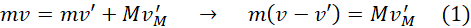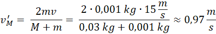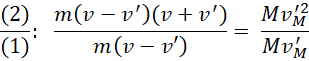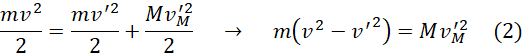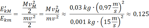Oblicz energię kinetyczną dużej kulki po zderzeniu. W tym celu oblicz jej prędkość po zderzeniu, korzystając z zasady zachowania pędu oraz zasady zachowania energii. Na koniec zapisz stosunek energii kinetycznej dużej kulki po zderzeniu do energii kinetycznej małej kulki przed zderzeniem.