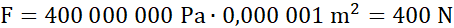 Można wykorzystywać cienki strumień wody o ciśnieniu 400 MPa do cięcia różnych materiałów. Policz, z jaką siłę będzie woda naciskać na powierzchnię jednego milimetra kwadratowego.