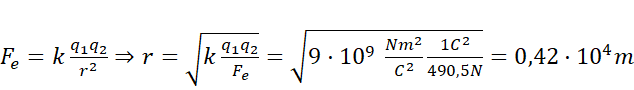 Oblicz siłę grawitacji w polu jednorodnym działającą na podane ciało. Następnie otrzymaną siłę wstaw do wzoru na siłę elektryczną i oblicz r.