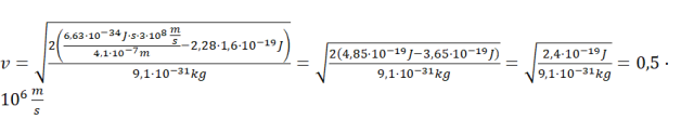 Przekształć wzór Einsteina-Millikana tak, aby otrzymać prędkość elektronu. Pamiętając, by jednostki były jednolite (w dżulach) oblicz jej wartość. 1eV=
