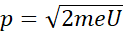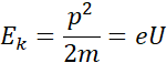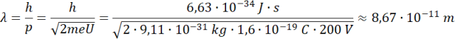 Przy napięciu przyspieszającym U elektron zyskuje energię kinetyczną: