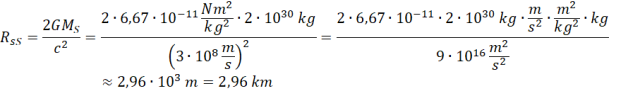 Korzystając ze wzoru na promień horyzontu zdarzeń, policz, jaki promień miałaby czarna dziura o masie Słońca.