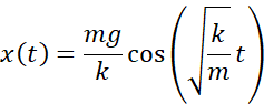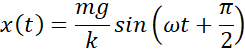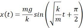 Skoro w chwili ciężarek znajdował się w maksymalnym wychyleniu, to znaczy, że rozciągnięcie sprężyny jest również amplitudą jej drgań, zanim ciężarek zaczął drgać, był on w spoczynku, czyli siła, która rozciągnęła sprężynę, była równa sile sprężystości sprężyny, na podstawie tej równości, oraz odpowiednich wzorów obliczamy amplitudę. Następnie korzystając z równania wychylenia zależnego od czasu oraz wzoru na prędkość kątową, wyprowadzamy ostateczny wzór na wychylenie.