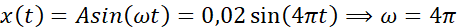 Korzystamy z ogólnej postaci równania na wychylenie ciała drgającego i dochodzimy do wniosku, że