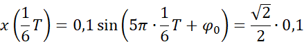Do równania ruchu potrzebne są: Amplituda, obliczamy ją, przekształcając wzór na maksymalną prędkość i wykorzystując zależność prędkości kątowej z okresem drgań, fazę początkową obliczamy, podstawiając do równania ruchu dany w treści zadania czas, następnie przyrównujemy nasze wyrażenie do