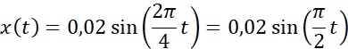 Wszystkie dane, które zostały wypisane, odczytujemy z wykresu, amplituda to maksymalne wychylenie ciała drgającego, okres to czas, w jakim ciało wykona jedno pełne drganie, czyli wychyli się z położenia równowagi o A następnie przejdzie przez nie i wychyli się ponownie o A w drugą stronę i wróci do położenia równowagi. Następnie podstawiamy nasze dane do wzoru na wychylenie.