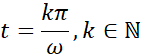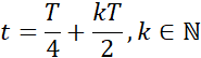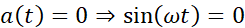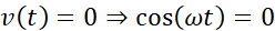 Aby odnaleźć szukane punkty, skorzystamy ze wzorów na przyśpieszenie i prędkość jako funkcje zależne od czasu, następnie przyrównując do zera, dochodzimy do wniosku, że argumenty funkcji trygonometrycznych muszą być równe odpowiednio dla cosinusa mamy