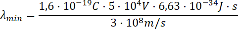 Minimalna długość fali w lampie rentgenowskiej jest opisana względem energii fotonu (co również odzwierciedla maksymalny pęd fotonu):