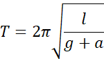 Zakładamy, że pracujemy w układzie nieinercjalnym, zatem kiedy wahadło zaczyna się poruszać z przyspieszeniem skierowanym pionowo do góry, to działa na nie siła bezwładności skierowana przeciwnie do wektora przyspieszenia, czyli ma ten sam zwrot i kierunek co siła grawitacji, zatem przyspieszenie całkowite układu jest równe sumie przyspieszenia ziemskiego oraz przyspieszenia, z jakim porusza się wahadło.