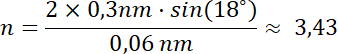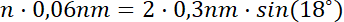 W tym zadaniu musisz określić rząd refleksu otrzymanego na ekranie, kiedy wiadomo, że kąt odbłysku wynosi 18°, a stała sieci krystalicznej wynosi 0.3 nm.