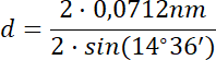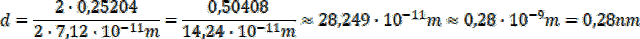 Ze wzoru Bragga dla dyfrakcji promieniowania X: